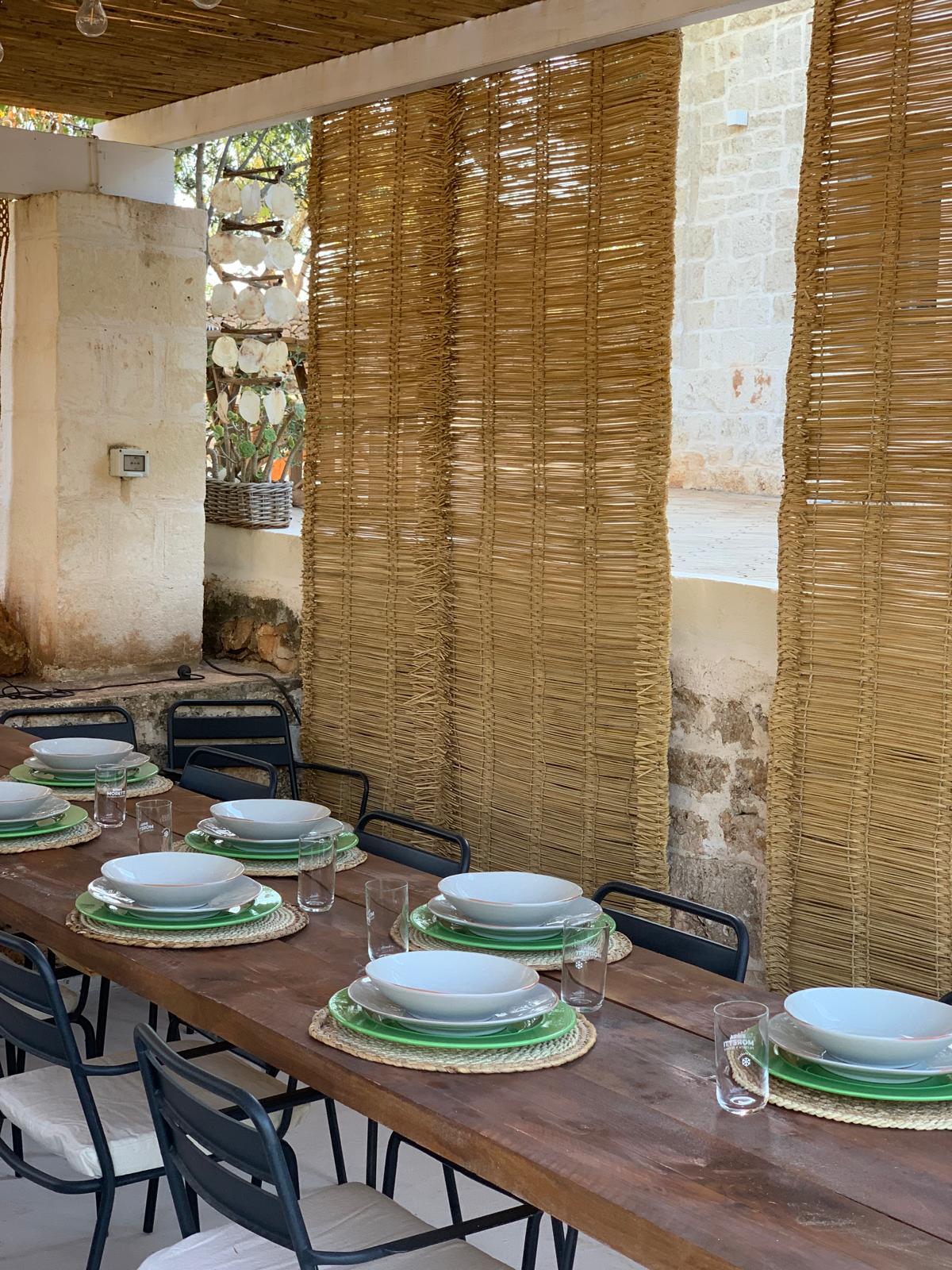 L’intera proprietà è delimitata da antichi muri a secco, la vegetazione è ordinata e ben tenuta ed è composta da oltre 300 piante di ulivi, mandorli, fichi, piante grasse e fichi d’india.