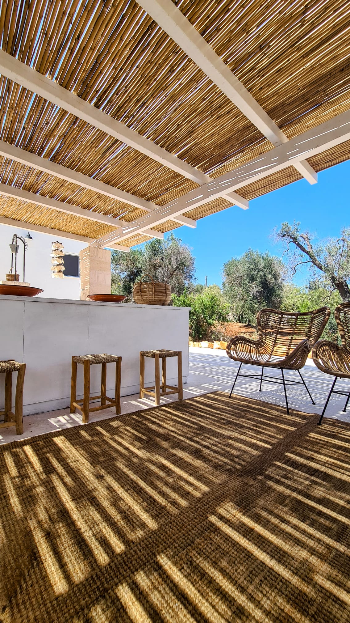 L’intera proprietà è delimitata da antichi muri a secco, la vegetazione è ordinata e ben tenuta ed è composta da oltre 300 piante di ulivi, mandorli, fichi, piante grasse e fichi d’india.